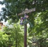A corner marked with a sign that includes the deceased's name and a gold star.